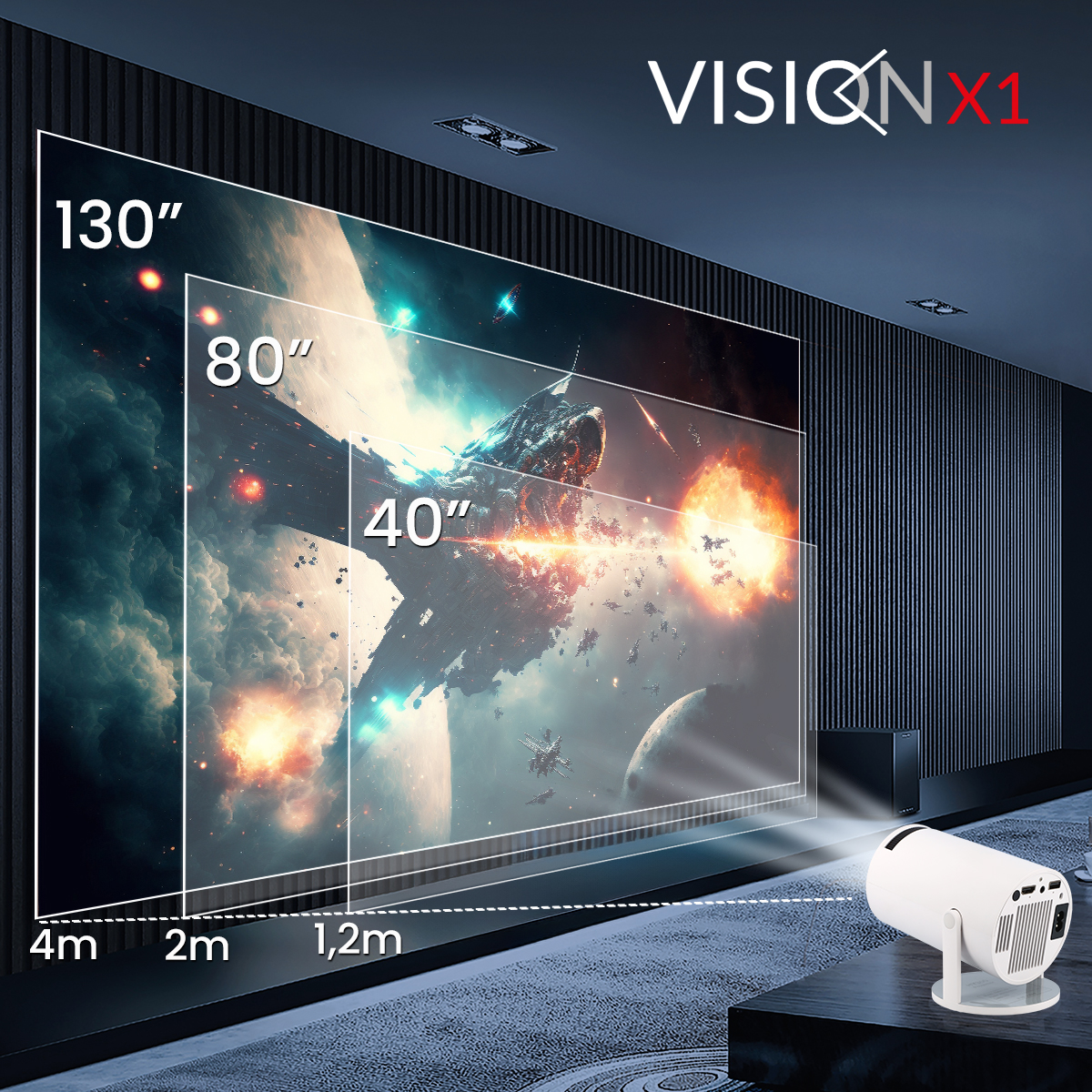 Projektor Opticum VISION X1 wykorzystuje technologię WIFI6, która oferuje szybszą prędkość transmisji i mniejsze opóźnie- nie transmisji, co pozwala na synchronizację ekranu w ciągu kilku sekund. Wbudowany chip BT5.0 umożliwia połączenie z różnymi urządzeniami Bluetooth, takimi jak głośniki Bluetooth i słuchawki, a także zapewnia transmisję dźwięku Hi-Fi.